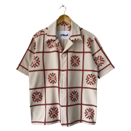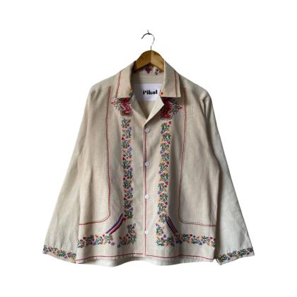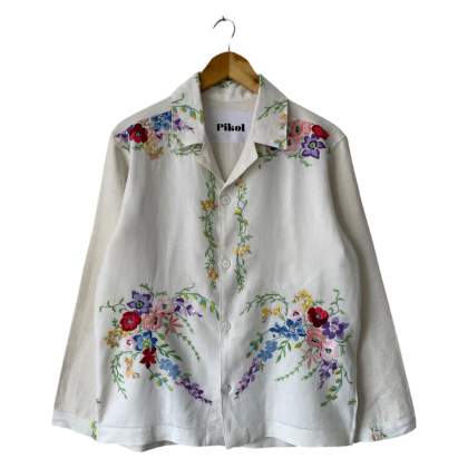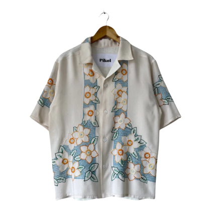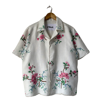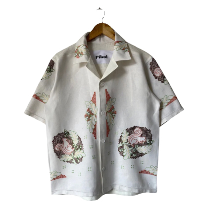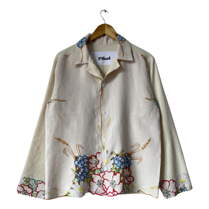 Shirt made from a vintage linen tablecloth. Fabric used may have slight imperfections